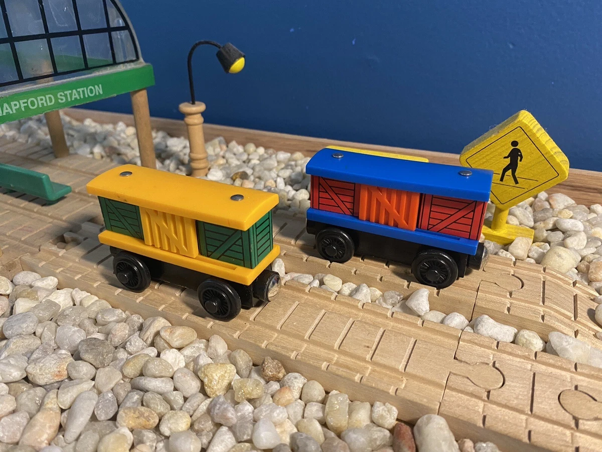 Source : www.ebay.comThomas The Tank Engine & Friends Wooden Railway Box Cars 1999
